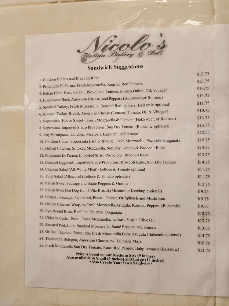 Located in Montclair, Nicolo's Italian Bakery and Deli is a local gem offering a wide range of freshly baked goods and authentic Italian deli options. With a cozy atmosphere and friendly service, this spot is famously known for its top-notch frittatas and world-class bread. Customers rave about the delicious sandwiches, delectable pastries, and nostalgic bread that reminds them of their childhood. The menu boasts a variety of options, from savory deli meats to mouthwatering desserts. Whether you're looking for a quick bite or catering for a group, Nicolo's has something for everyone. With outdoor seating, free Wi-Fi, and convenient parking options, Nicolo's Italian Bakery and Deli is a must-visit for Italian food enthusiasts in the area.